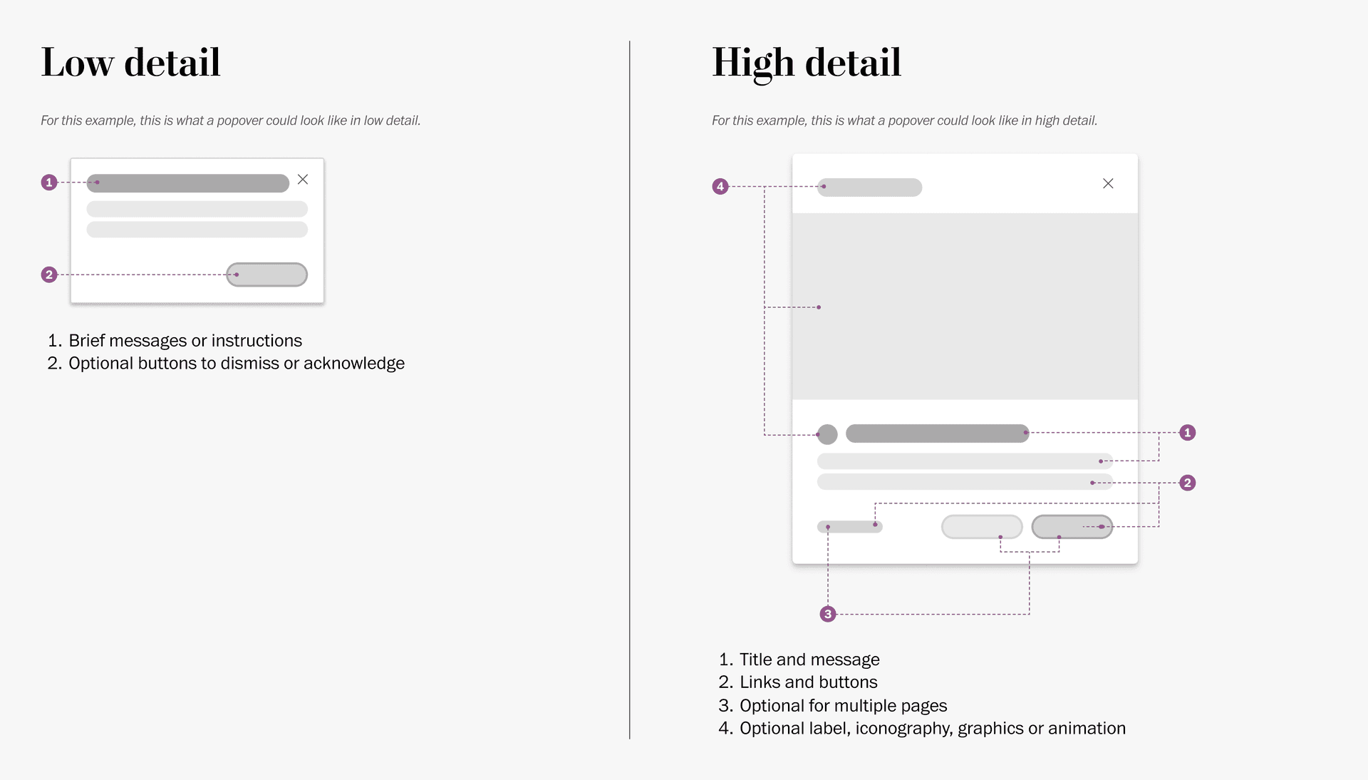 Appropriate for information-dense content that doesn't demand immediate user action, but requires careful consideration (e.g., in-depth tooltips, instructional guides)